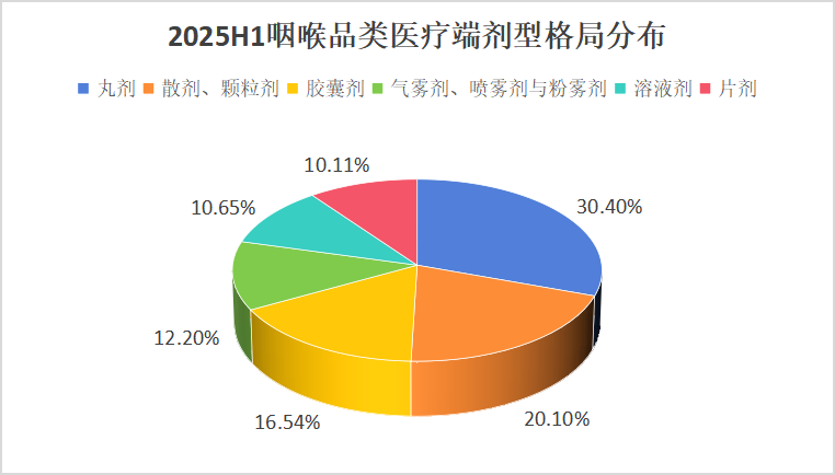 在咽喉医疗端剂型格局中,2025H1丸剂市场份额超30%,排名第一。意味着在解决咽喉问题上,丸剂剂型逐渐成为医生及患者的第一选择,特别是如清咽滴丸这样的滴丸剂型,在临床中具备“患处含服快速缓解咽痛咽干咽部红肿”的治疗优势,且得到高度肯定。国务院联防联控《新冠病毒感染者居家治疗指南》中,清咽滴丸是以含服为服用方式的丸剂中成药被推荐。