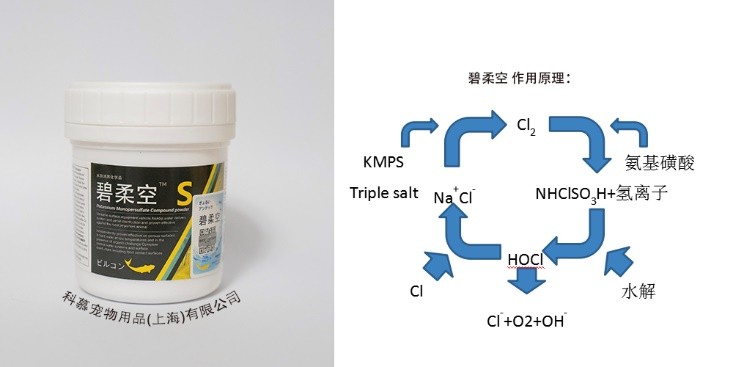 碧柔空VKE单过硫酸氢钾复合盐最初由美国科慕动保公司发明,科慕宠物用品上海有限公司与2019年在宠物领域全面拓展后,在中国市场被广泛应用,碧柔空,VKE在水中经过链式反应连续产生次氯酸、新生态氧,氧化和氯化病原体,干扰病原体的DNA和RNA合成,使病原体的蛋白质凝固变性,进而干扰病原体酶系统的活性、影响其代谢,增加细胞膜的通透性,造成酶和营养物质流失、病原体溶解破裂,进而杀灭病原体。。这意味着它在杀菌过程中不易生成三卤甲烷(THMs)等致癌物质,对水产动物的刺激性也更小。正是这种独特的氧化特性,使得单过硫酸氢钾复合盐在保障水产品安全和环境健康方面具有显著优势。