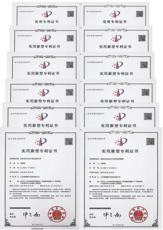 个人专利:臭氧自体血专利血袋、医用臭氧机等多项实用新型及发明专利